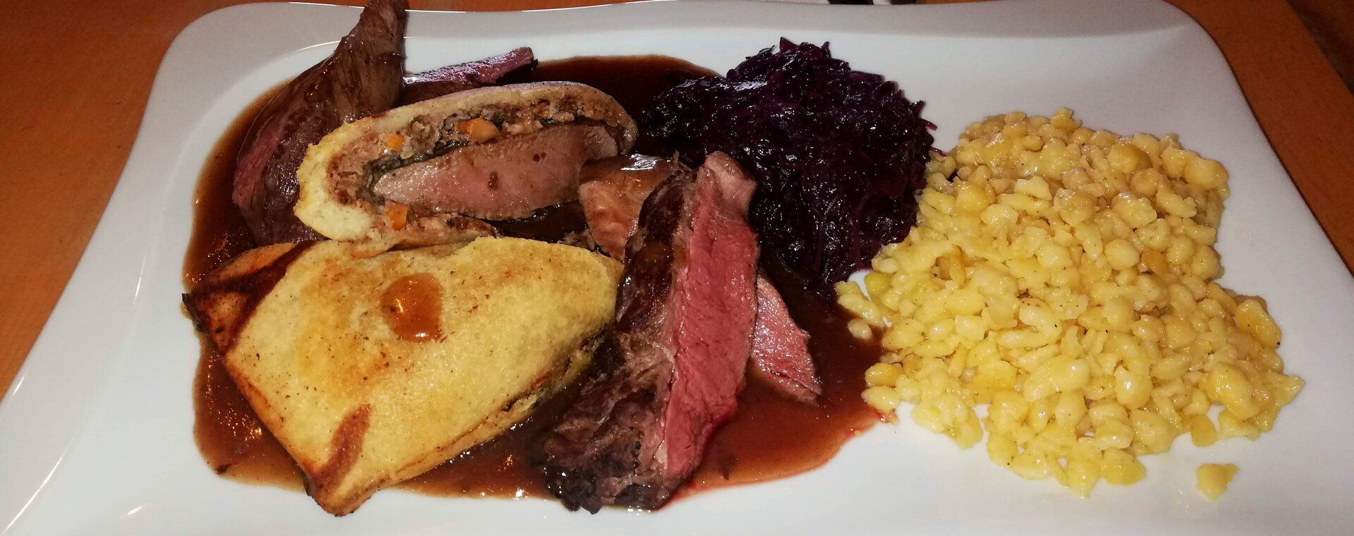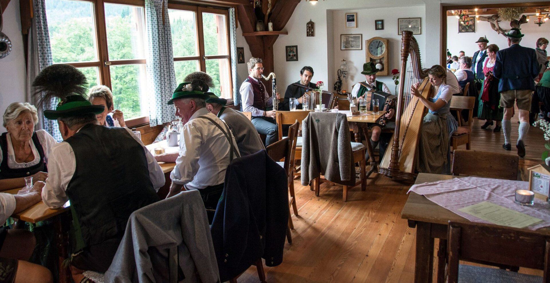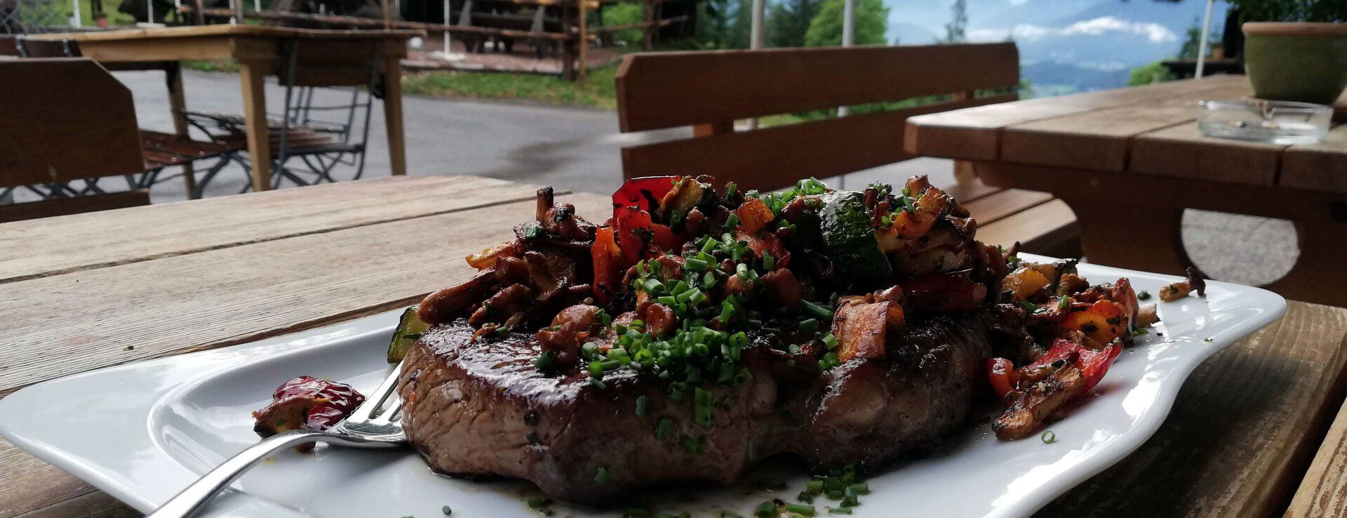 Besuchen Sie unsere gemütliche Gaststätte und lassen Sie sich von der heimischen Küche verwöhnen. Von unserer Terrasse aus haben Sie einen perfekten Ausblick über den Berchtesgadener Talkessel.